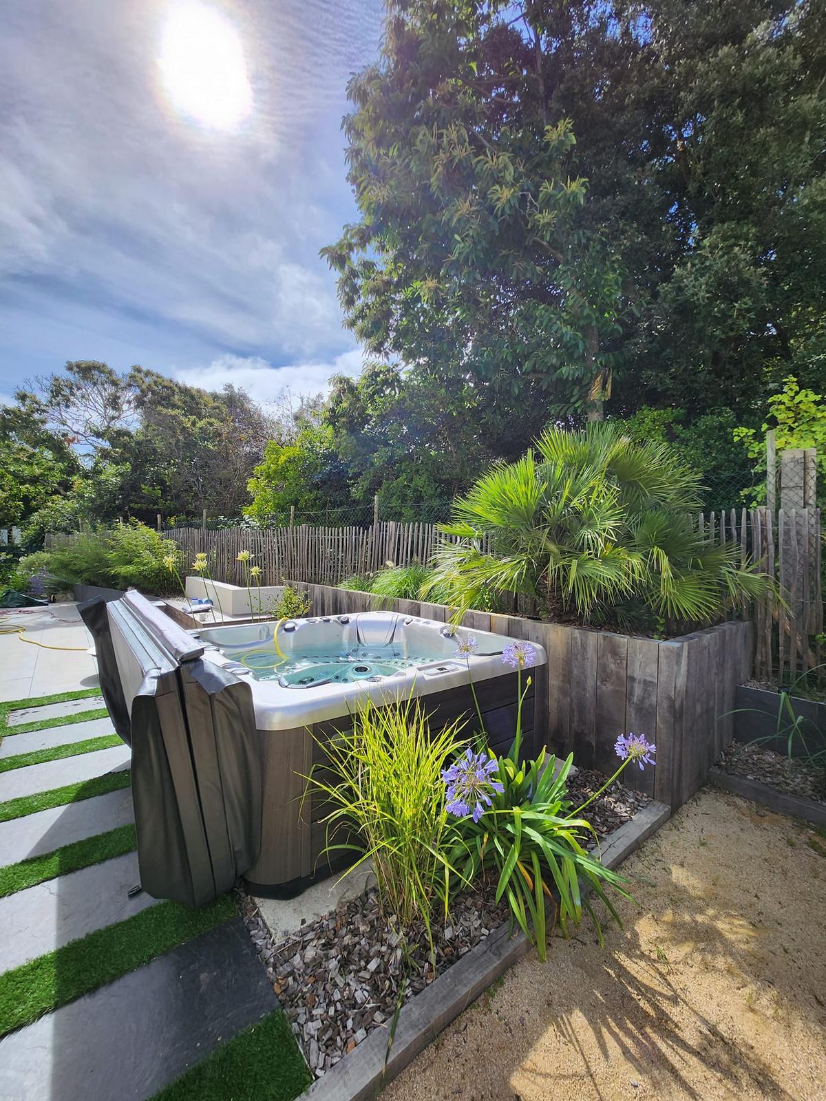 cinque persone, la spa Hawaï combina potenza e delicatezza per offrire un massaggio equilibrato. Il suo spazio generoso e i suoi sedili ergonomici la rendono una spa conviviale, perfetta per godere di un benessere assoluto.